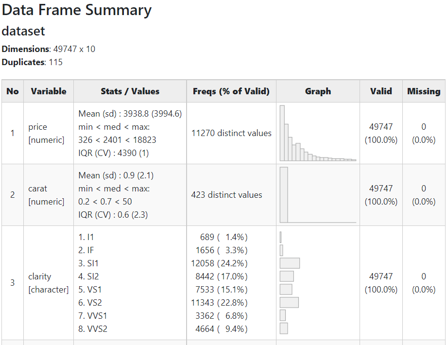 以下、実行結果(dfSummaryの出力)です。クリックすると別のHTMLページが開きます。