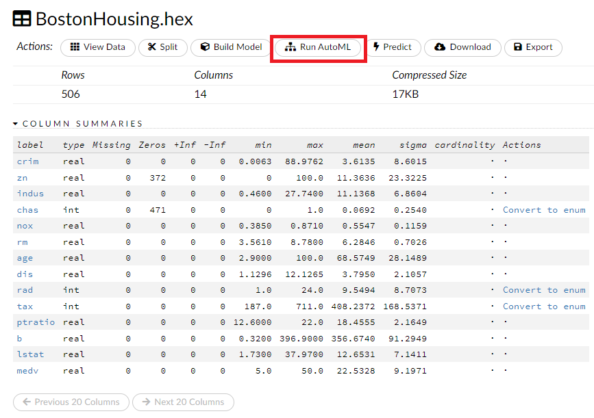先ほどの画面に戻り(上にスクロール)、Run AutoML をクリックします。