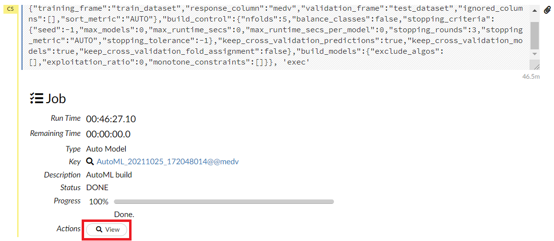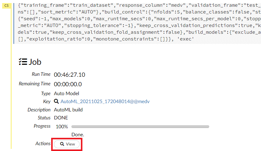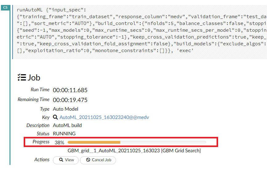 AutoMLが始まります。時間は結構かかりますので、気長に待ちましょう。Progressが100%になったら終了です。