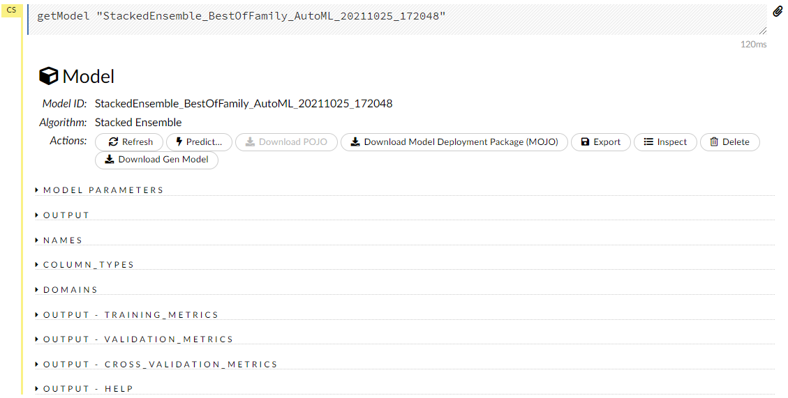 一番上がベストなモデルです。このケースでは、スタッキング学習したモデル(StackedEnsemble_BestOfFamily_AutoML_20211025_172048)がベストなモデルです。