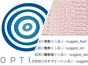機械学習などの数理モデルには、通常幾つかのハイパーパラメータがあり、そのハイパーパラメータの設定次第で大きく精度が変わります。 このハイパーパラメータを調整し最適な設定を探すタスクを、ハイパーパラメータチューニングと言い … 続きを読む Python のハイパーパラメータ自動最適化ライブラリー Optuna その2