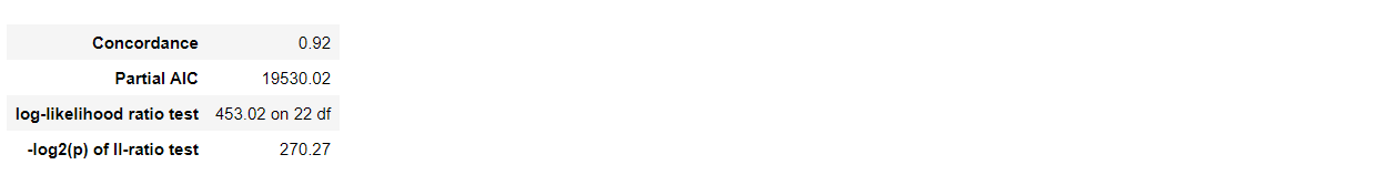 Concordanceという指標が出力されていますが、これがC-Indexです。学習データのC-Indexが0.92であることが分かります。