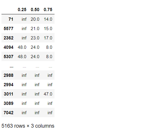 # 予測結果(第1四分位数,中央値(第2四分位数),第3四分位数)※離反しやすい順