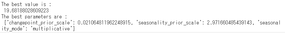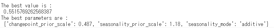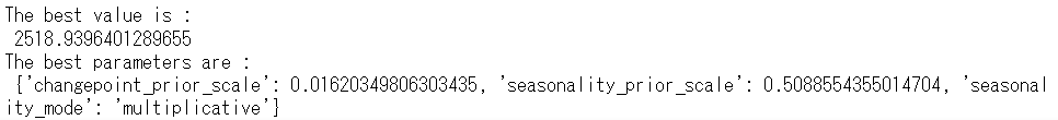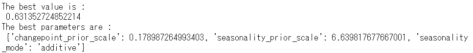 先ず、OptunaでProphetモデルの最適パラメータを探します。
