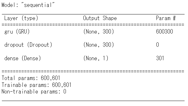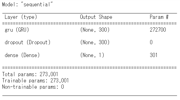 以下、コードです。LSTMの違いは3行目がLSTMからGRUに変わったところです。