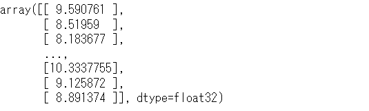 dataset = np.reshape(dataset, (-1, 1)) #1次元配列を2次元配列へ変換
