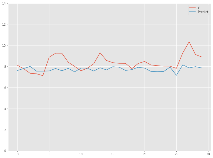 # 直近30日の実測値(y)と予測値(Predict)を結合