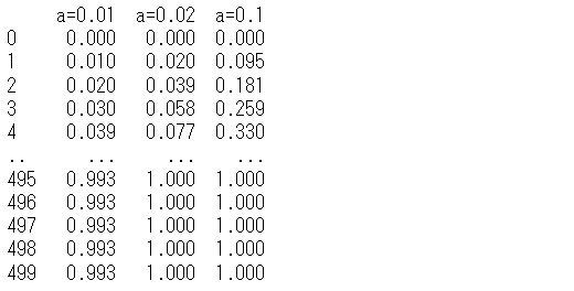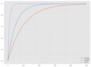 今回は、最もシンプルな指数関数 1-exp(-ax) でモデル化します。a はハイパーパラメータです。