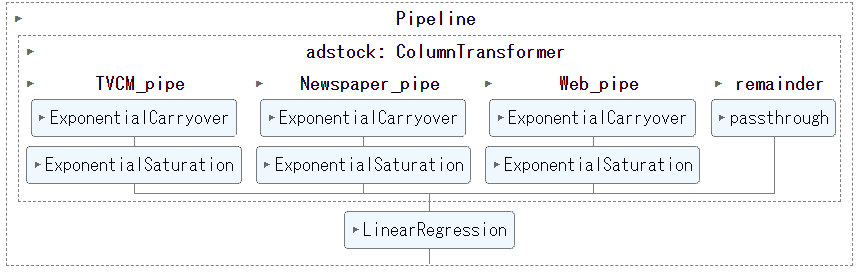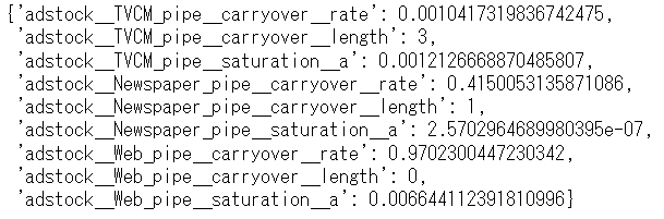 # パイプラインのインスタンス MMM_pipe_best = MMM_pipe.set_params(**optuna_search.best_params_)
