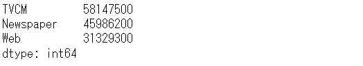 # 各媒体のコストの合計 cost_sum = X.sum(axis=0) cost_sum #確認