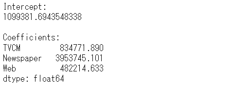 # 結果出力(切片と係数)
