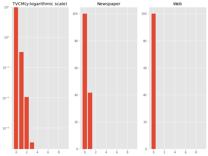 以下、実行結果です。TVCMだけ対数変換し表示しています。