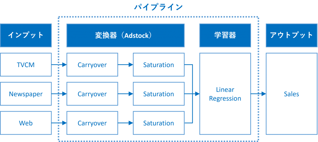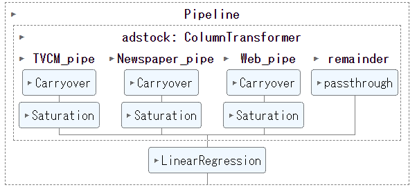 # パイプラインのインスタンス MMM_pipe_best = MMM_pipe.set_params(**best_params)