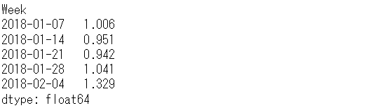 # 補正係数 correction_factor = y.div(y_pred, axis=0) correction_factor.head() #確認