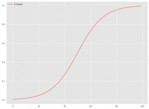 以下は、「S字曲線型飽和モデル」です。S字曲線型飽和モデルには幾つかありますが、今回は「ロジスティック型飽和モデル」と「ゴンペルツ型飽和モデル」を使います。