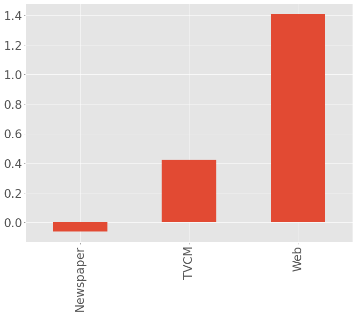 TVCMは0以上なのはTVCMとWebです。Webが非常にいいということが分かります。一方、Newspaperは0未満なので、少なくとも止めたほうが良さそうです。