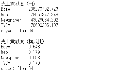 print('売上貢献度(構成比):\n',