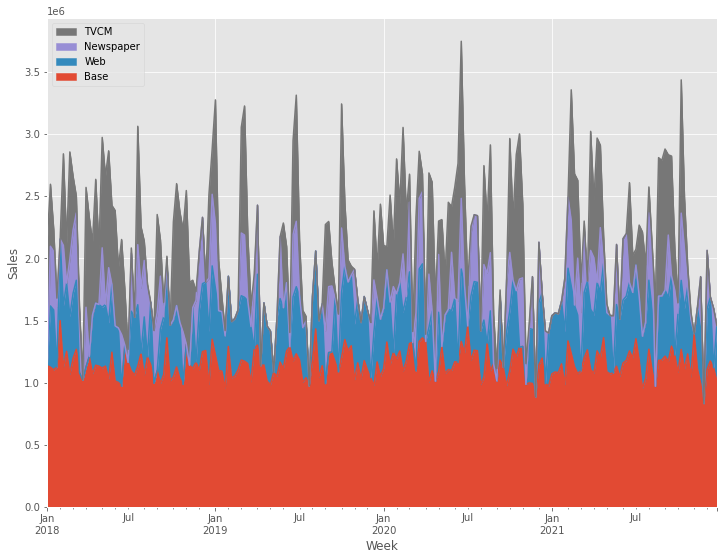 contribution = pred_adj[['Base', 'Web', 'Newspaper', 'TVCM']]
