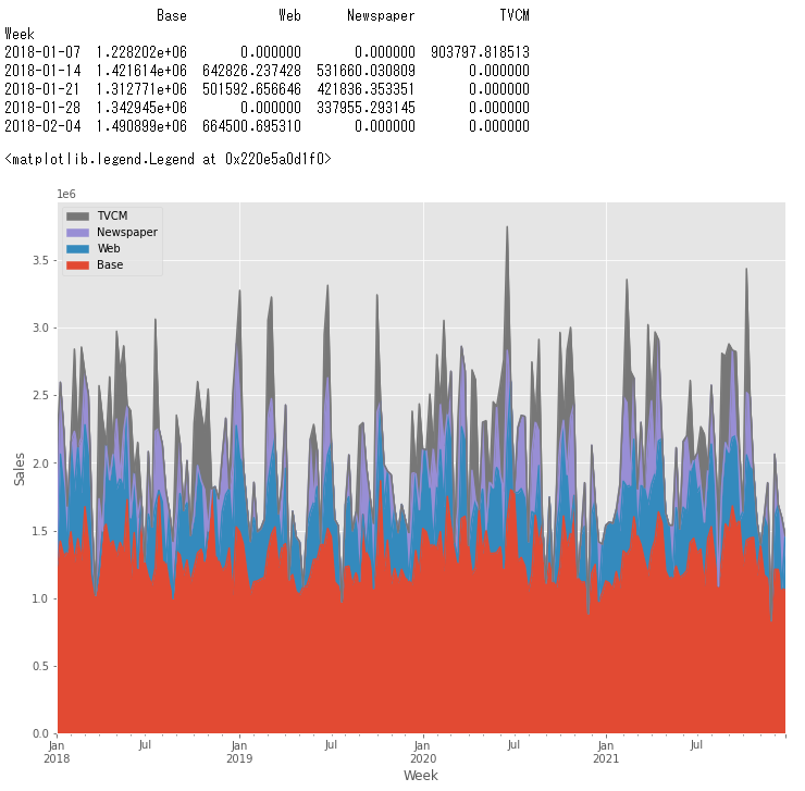 contribution = pred_adj[['Base', 'Web', 'Newspaper', 'TVCM']]