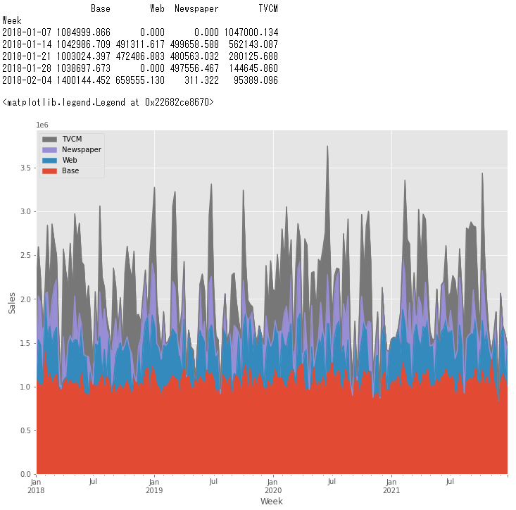 contribution = pred_adj[['Base', 'Web', 'Newspaper', 'TVCM']]