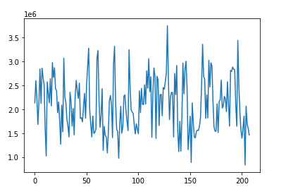 すべてのカラム(変数)がプロットされています。特定のカラム(変数)を指定しプロットします。