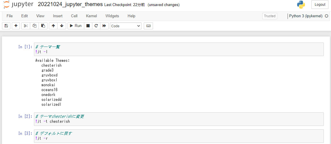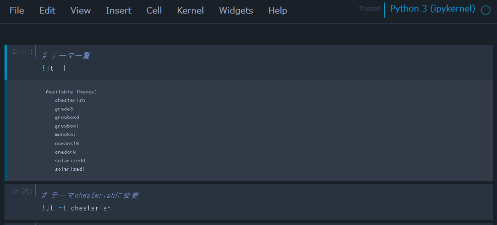 ということで、今回はJupyterのデザインを変更するjupyterthemesのお話しです。