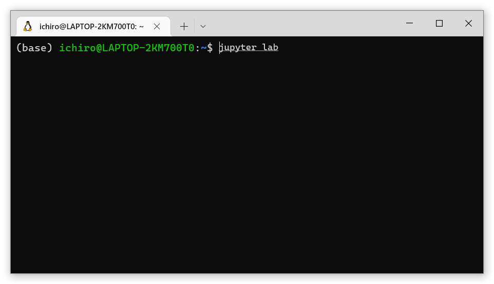 直接Jupyter Labを立ち上げるときは、以下のコマンドを記述し実行します。