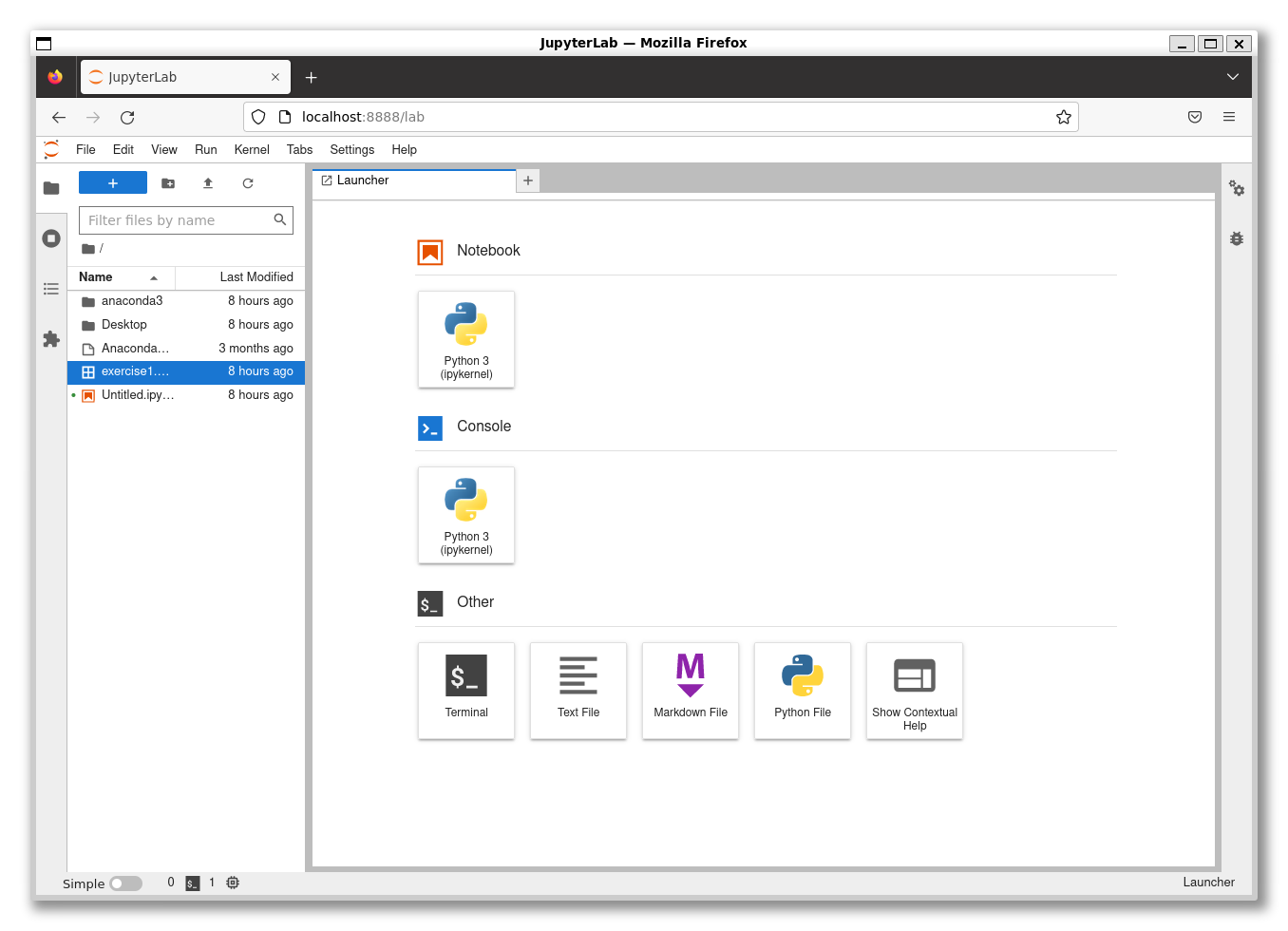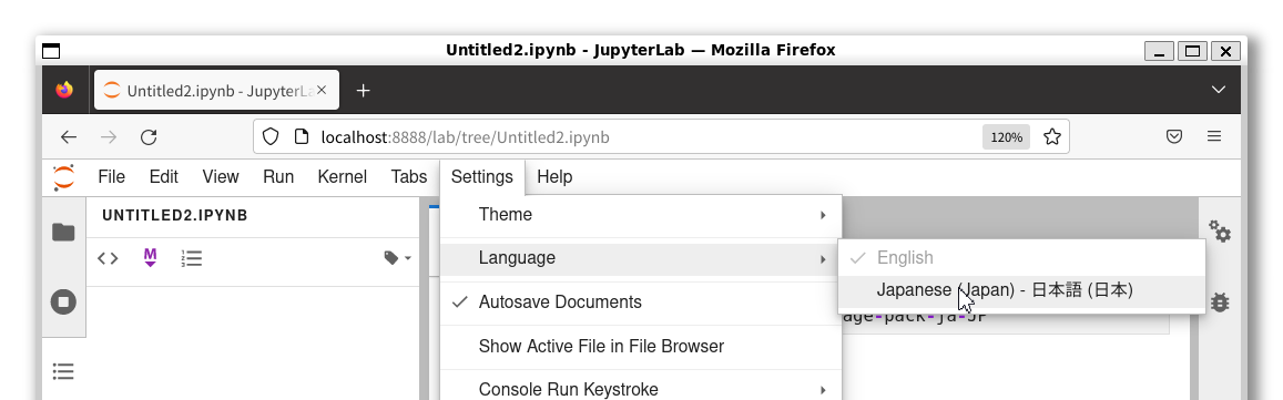 見慣れたJupyter Labが起動されます。基本的な使い方は、Windows版と同じです。