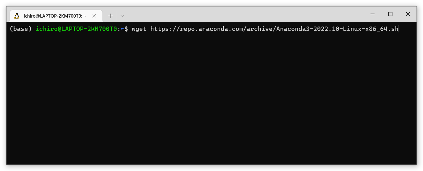 Ubuntu上で、以下のコマンドを記述し実行すると、Anaconda(Anaconda3-2022.10)がダウンロードされます。