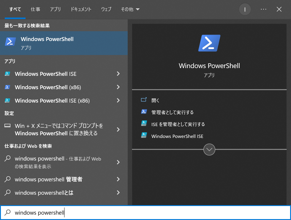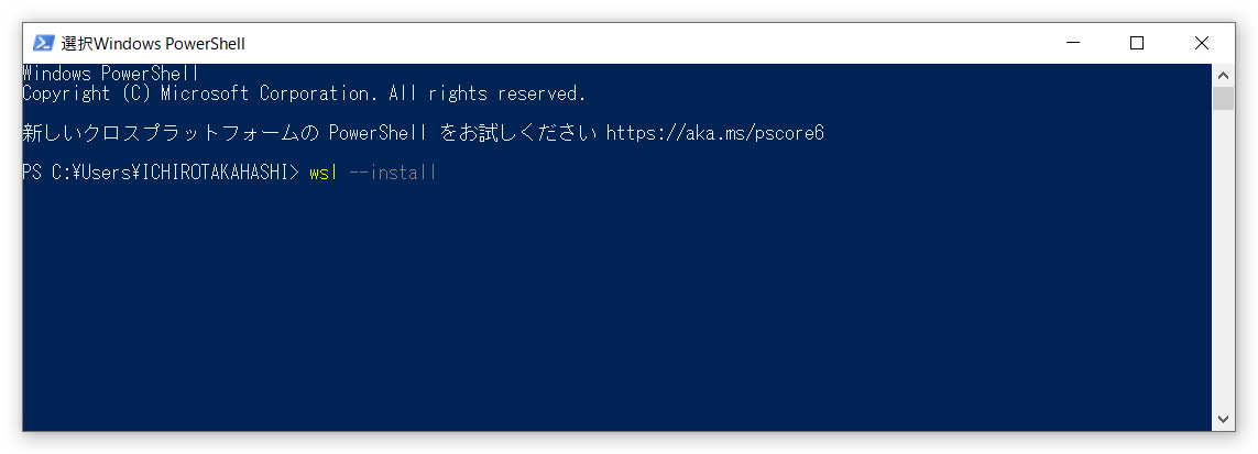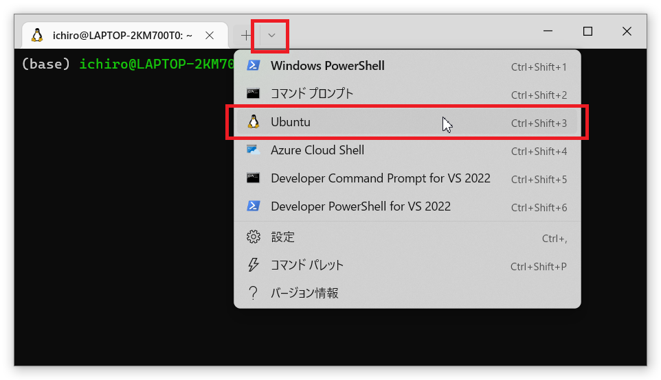 では、起動してみます。PowerShell や コマンドプロンプト、Ubuntuなどを選んで起動することもできます。単に起動すると、PowerShell が起動します。