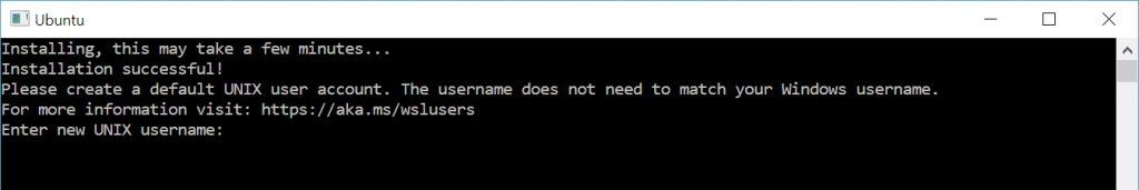 PCを再起動しいつも通りWindowsを立ち上げると、Ubuntuのユーザ名とパスワードを設定するよう促されます。