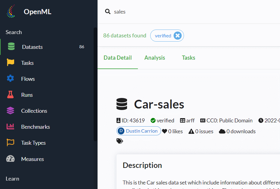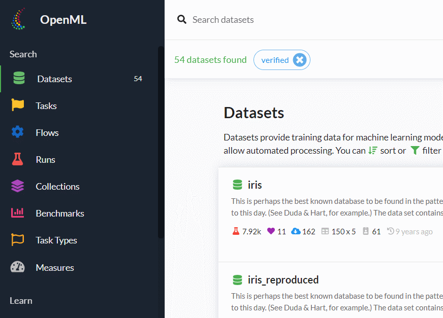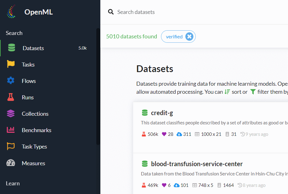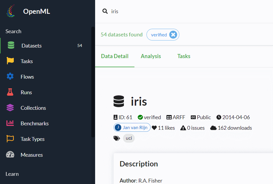 サイト(https://www.openml.org/)を見ていただくと分かりますが、例えば……