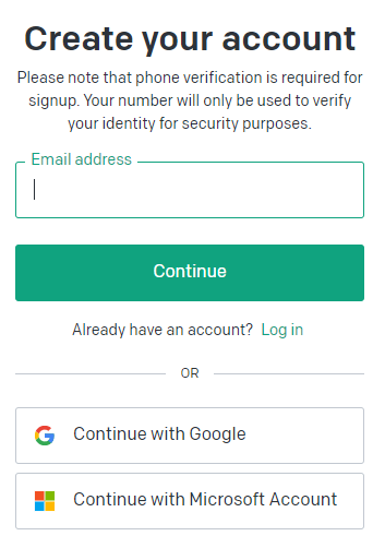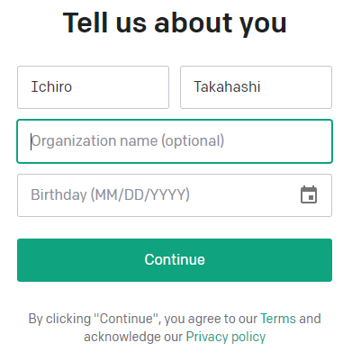 OpenAIのアカウントをお持ちでない方は、以下のサイトからアカウント作成してください。