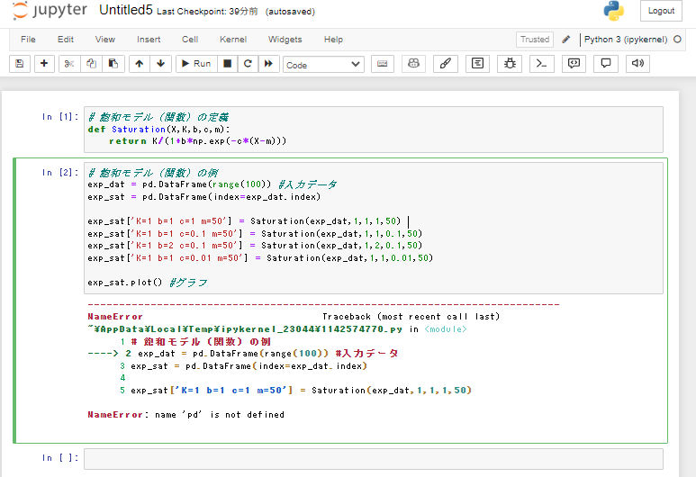 以下のロジスティック曲線の関数を定義したコードに対し、幾つかの機能を試していきます。