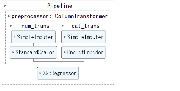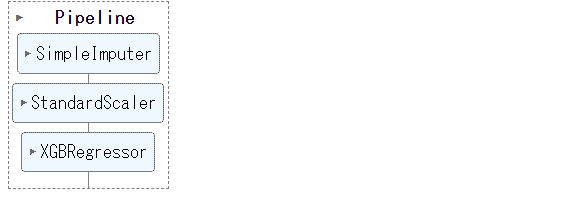 今定義した変換器だけのパイプラインを、推定器(XGBoost)と連携し完成させます。