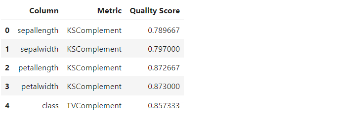 DiagnosticResults: SUCCESS: ✓ The synthetic data covers over 90% of the numerical ranges present in the real data ✓ The synthetic data covers over 90% of the categories present in the real data ✓ Over 90% of the synthetic rows are not copies of the real data ✓ The synthetic data follows over 90% of the min/max boundaries set by the real data