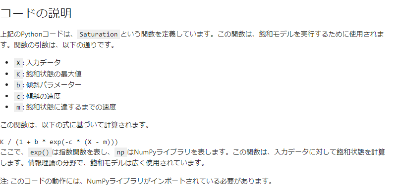 チャットインターフェイス(プロンプトを入力する部分)に「このコードは何をしますか?」と記載し聞いてみます。