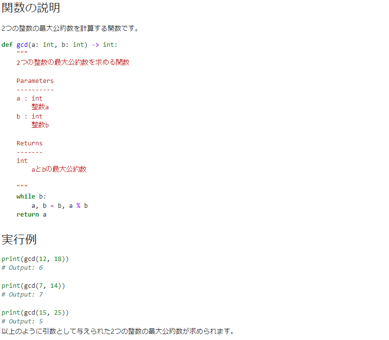 %%ai chatgpt 2つの整数の最大公約数を計算する関数と その関数の実行例