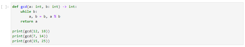%%ai chatgpt -f code 2つの整数の最大公約数を計算する関数と その関数の実行例