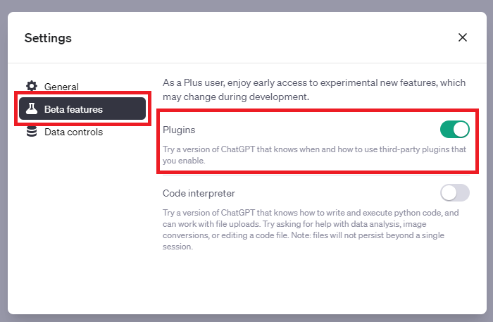 Settingの画面が表示されますので、「Beta features」で「Plugins」を有効にします。