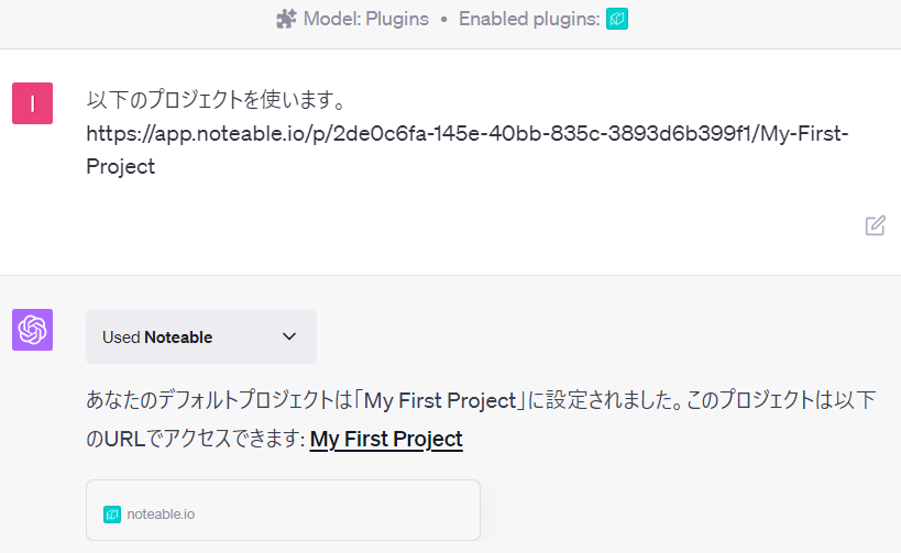 NoteableプロジェクトのURLをChatGPTへ渡します。