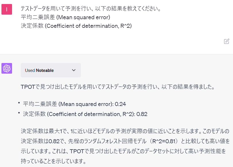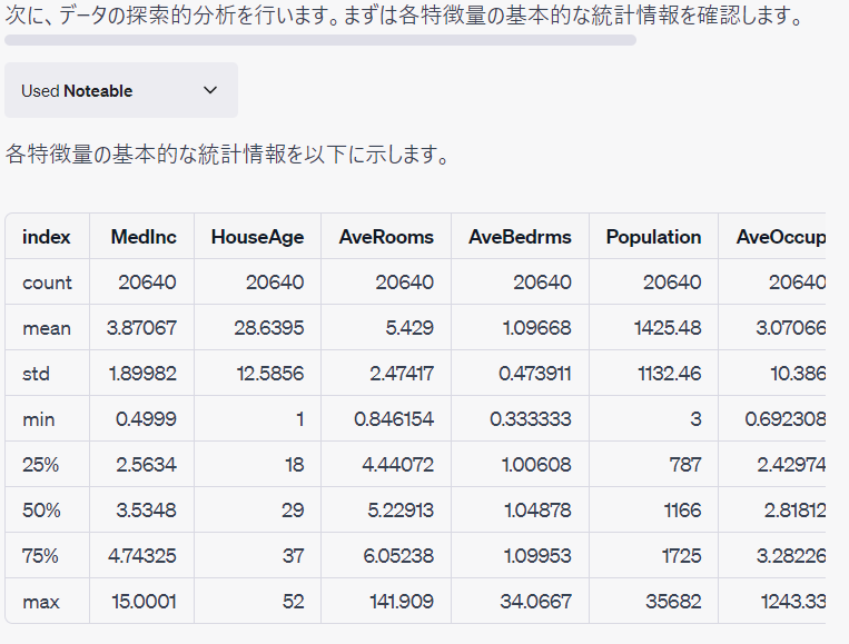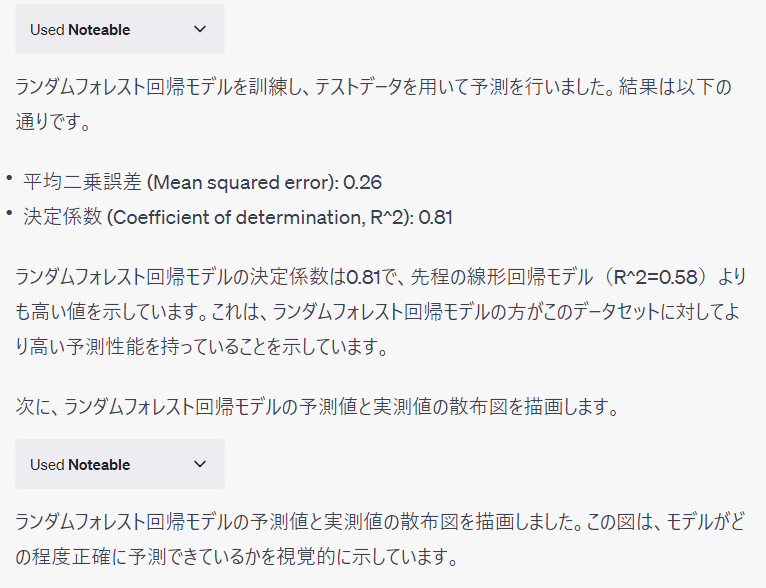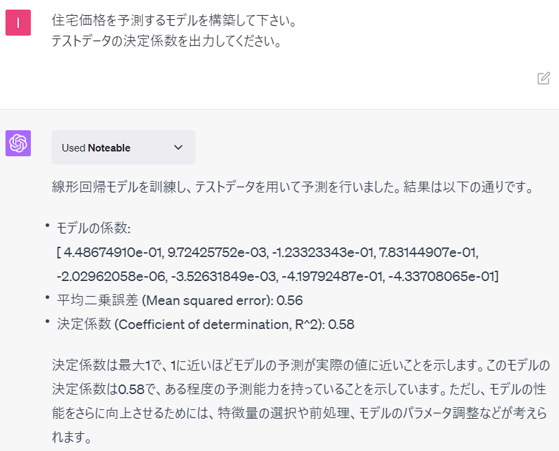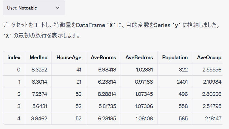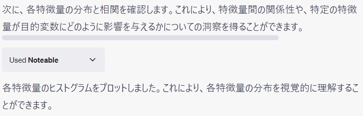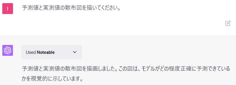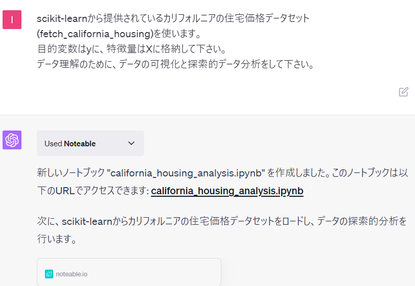 ChatGPTの裏で、Noteableが実行されデータ分析が行われています。