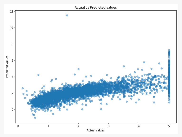 住宅価格を予測するモデルを構築して下さい。 テストデータの決定係数を出力してください。