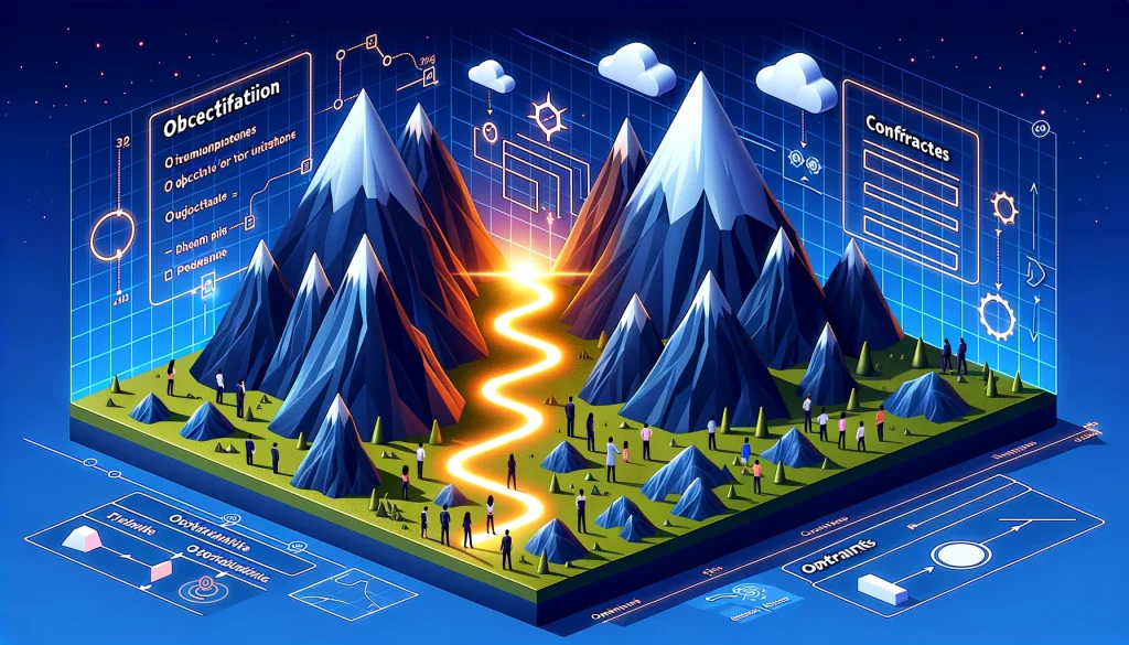 このプロセスは、複数の選択肢の中から最良の選択を定量的に判断するために使用されます。最適化問題は一般的に、目的関数、変数、制約から構成されます。