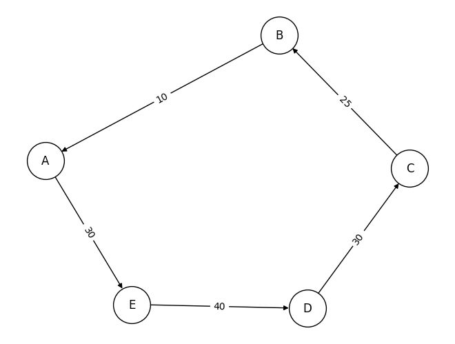 以上から、最短ルートは A → B → E → C → D → A で、その合計距離は 90 となります。]