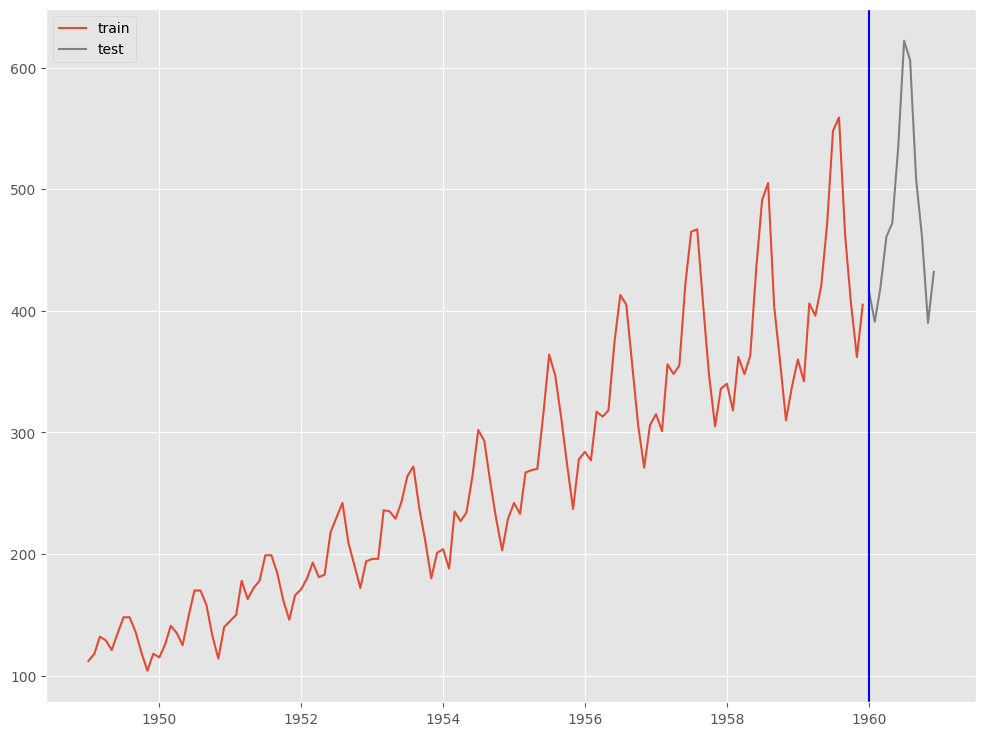 ax.plot(test.index.values, test.Passengers.values, label='actual(test)', color='gray')