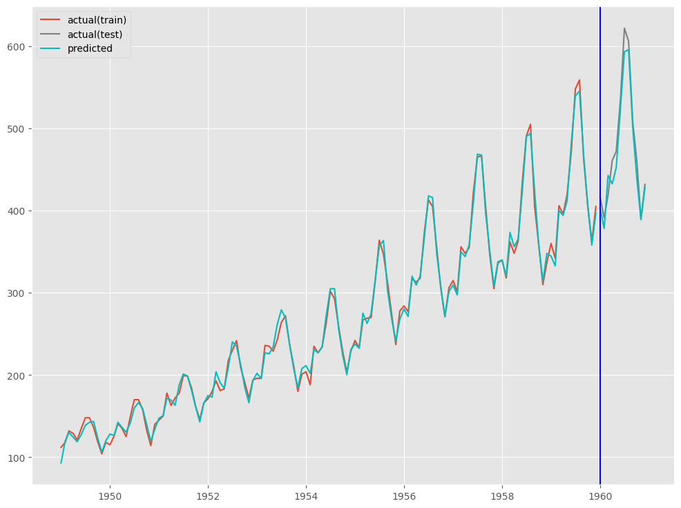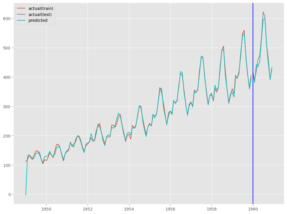print('RMSE:\n',np.sqrt(mean_squared_error(test.Passengers, test_pred)))