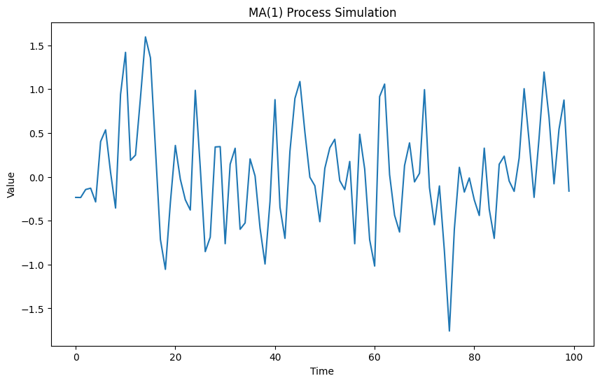 移動平均モデルでは、過去の予測誤差が現在の値に影響を与えると考えます。