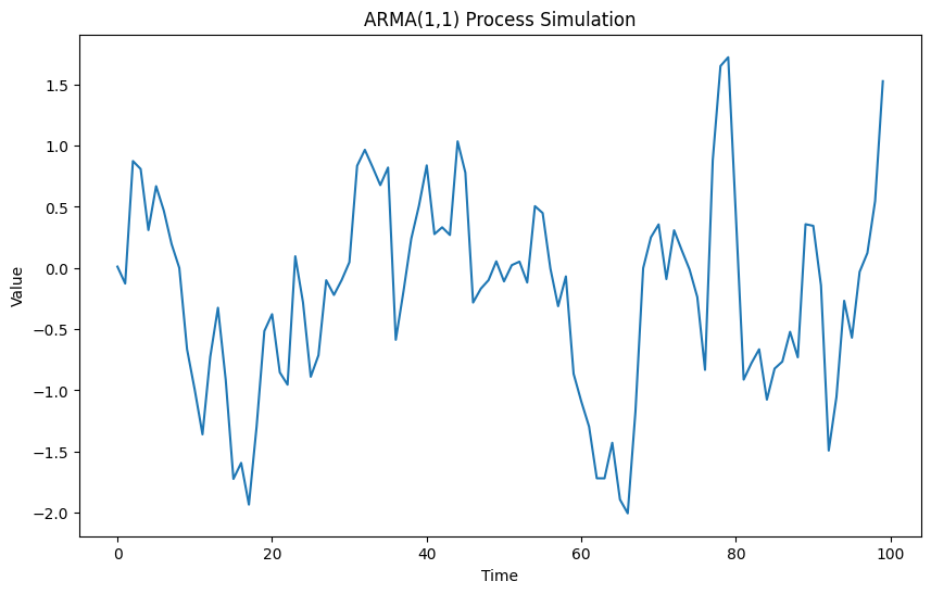 ARMAモデルはARとMAモデルを組み合わせたもので、過去の値と過去の誤差が現在の値に影響を与えます。