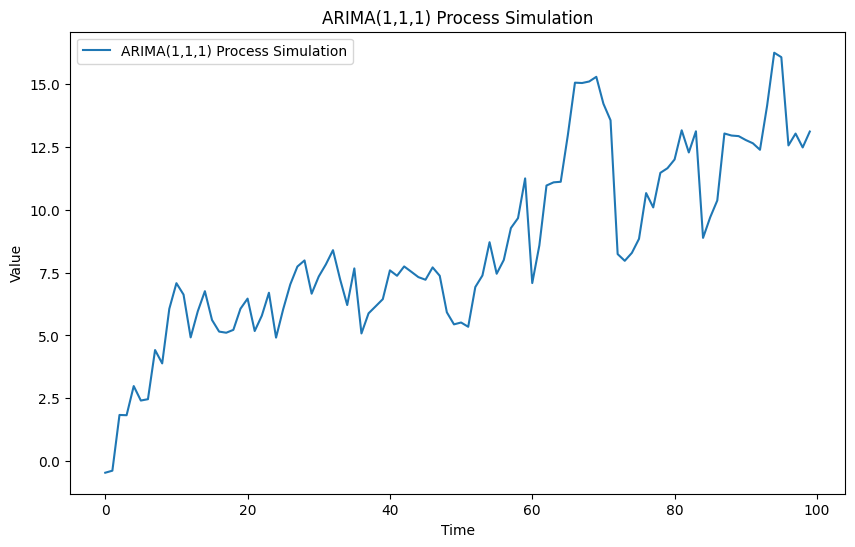 plt.title('ARIMA(1,1,1) Process Simulation')